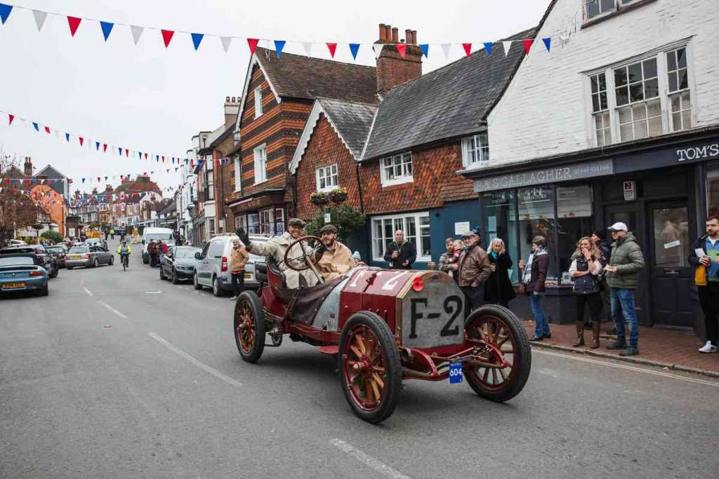Gli ultracentenari veicoli sbuffavano e sibilavano lungo il Wellington Arch per poi scendere verso Constitution Hill, oltrepassare Buckingham Palace, Admiralty Arch e Whitehall fino a Parliament Square e oltre Westminster Bridge, sotto lo sguardo del Big Ben. Qui, il percorso di 60 miglia si divideva in due per evitare il traffico nel sud di Londra. Metà dei partecipanti seguiva il tradizionale percorso della A23 via Kennington, Brixton e Streatham Common; l’altra metà attraversava Lambeth Bridge e poi Vauxhall, Clapham Common e Tooting. I due percorsi si univano poi sulla A236 appena a nord di Croydon, con l’intera cavalcata magica riunita per arrivare al lungomare di Madeira Drive.